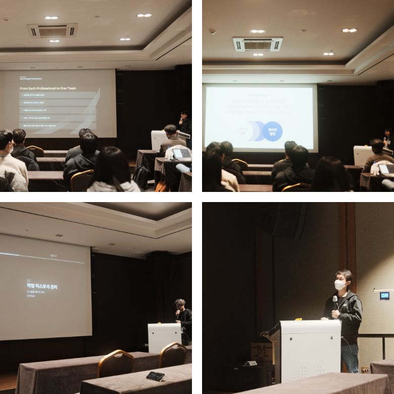 각 부서의 팀장님들이 나와 발표해 주셨는데요. 각 팀의 특색과 비전, 목표 등이 무엇인지