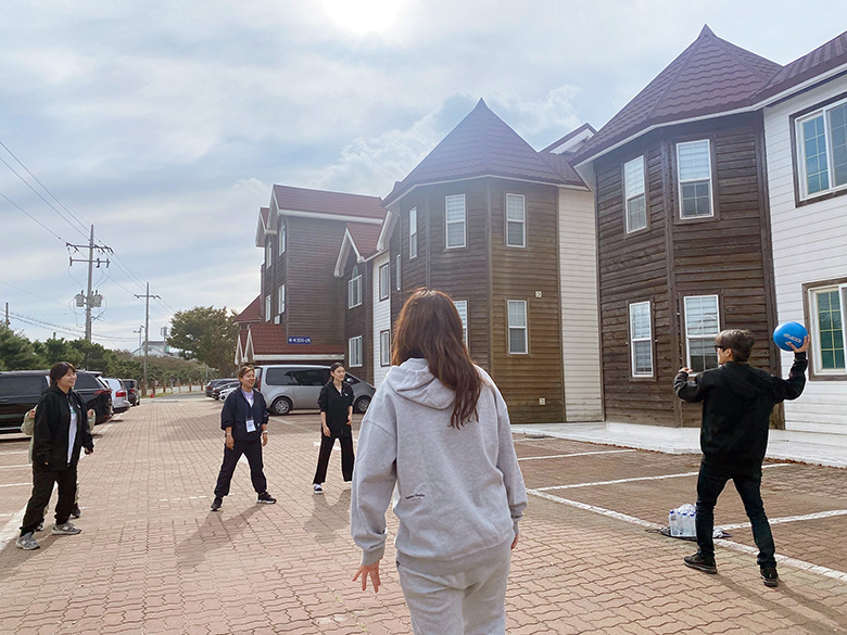 이튿날 가진 자유시간, 하루 종일 바닷가에 있어도 되고, 방에 누워있어도 되지만, 프로잘놀러 위버로프트인 중 뜻이 맞는 멤버끼리 주차장에서 피구를 하며 놀았습니다. 사회생활하면서 피구할 기회가 없었는데 오랜만에 하니 너무 재밌더라고요! 비록 차장님의 피구 공이 너무 강력했.. 지지 않아! 우리에게 남은 건 오로지 승리를 향한 집념뿐! 공 하나만 있어도 잘 노는 위버로프트인, 장비까지 세팅하면 얼마나 잘 놀지 예상되시나요?