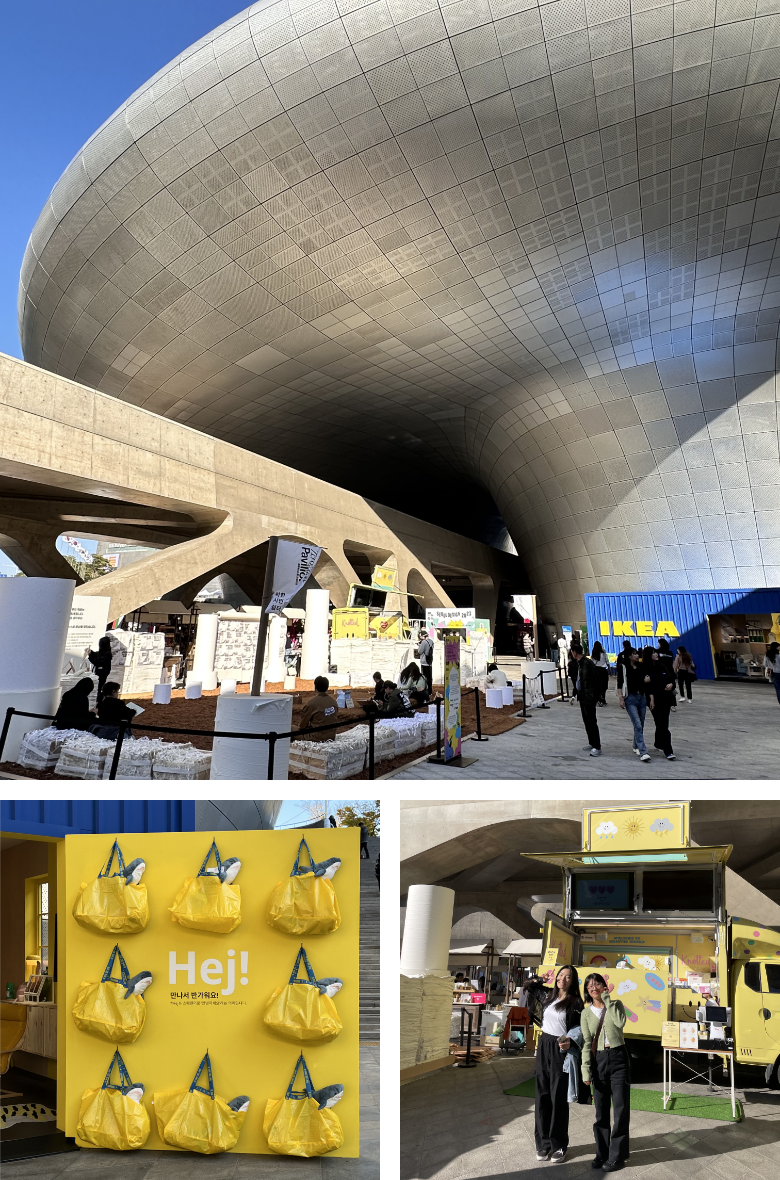지구 🐥|다양한 브랜드와 대학교의 콜라보 작품들에서 트렌디함을 엿볼 수 있었고, 환경에 초점을 맞춰 디자이너가 어떤 식으로 해석했는지 구경하는 재미가 있었습니다. 체험 전시가 많아 디자인팀과 더 즐겁게 즐길 수 있었습니다!☘